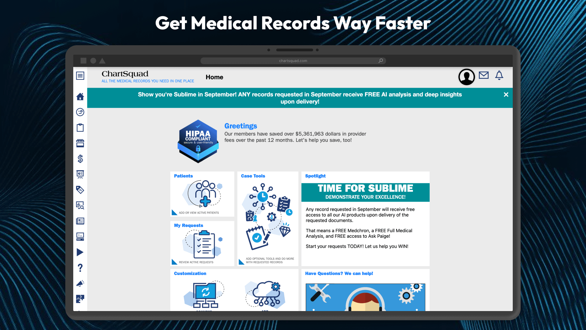 ChartSquad is the only Personal Health Record in the Nation that maintains low provider fees by utilizing Federal Law advocating for your clients. -
