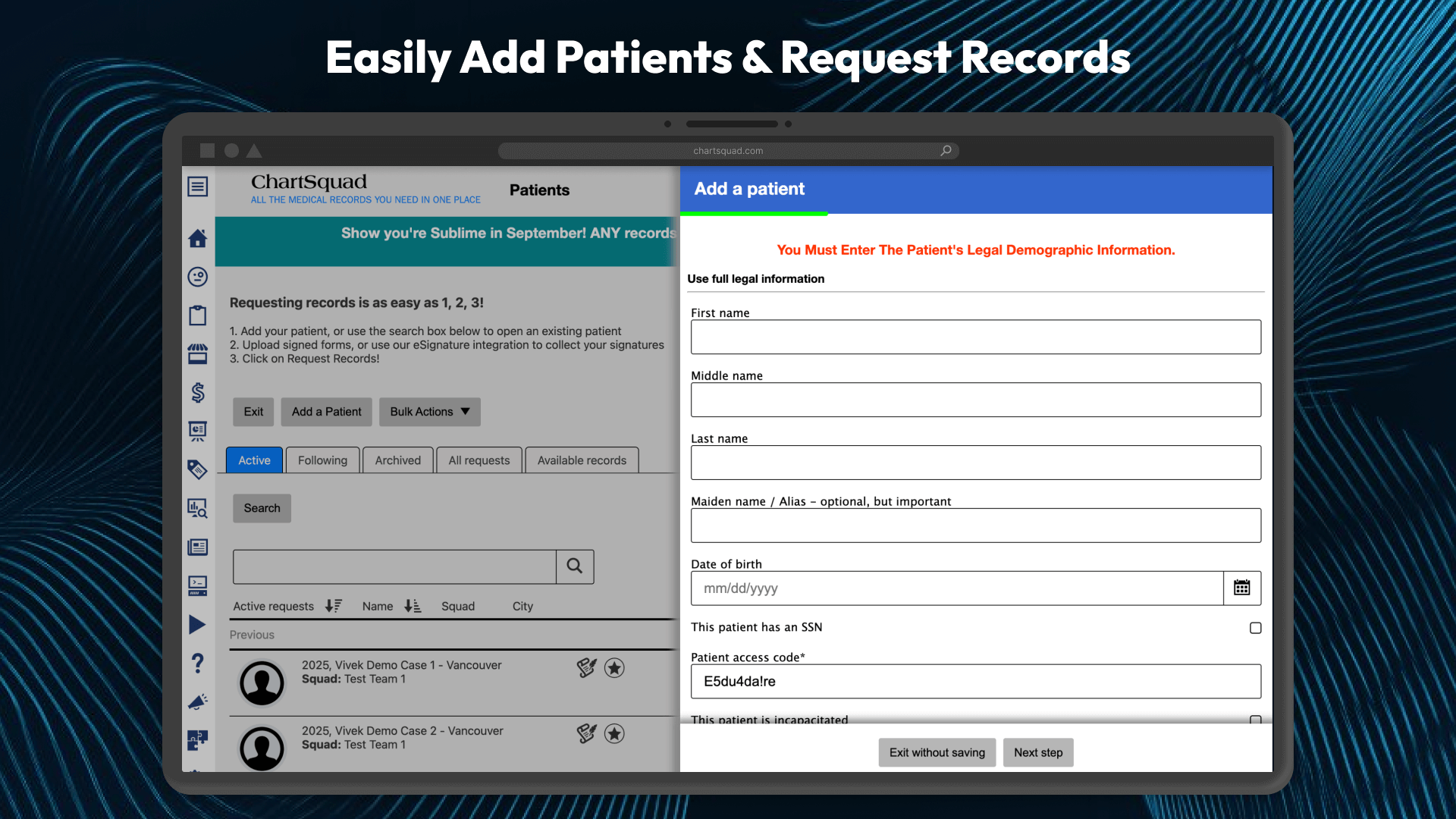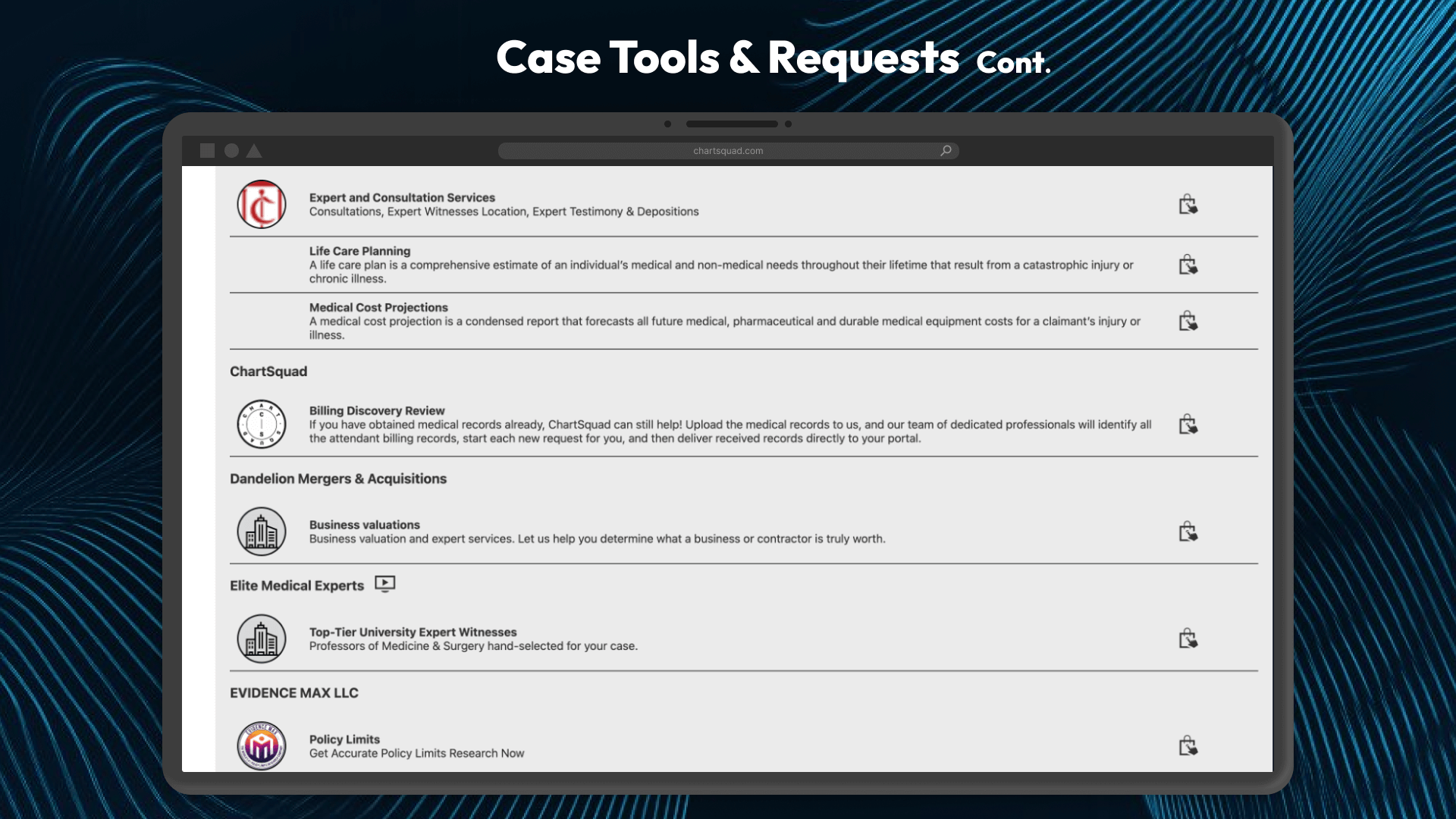 If you are requesting records in house you are missing out on two crucial time and cost saving benefits: 1) Stop subsidizing case costs on the labor it takes to follow up with provider, re-do requests after unreasonable delays and rejections, sending in provider payments, and track down specialists billing; 2) With third-party requests, you are not receiving the full Designated Record Set. ChartSquad is the solution.
