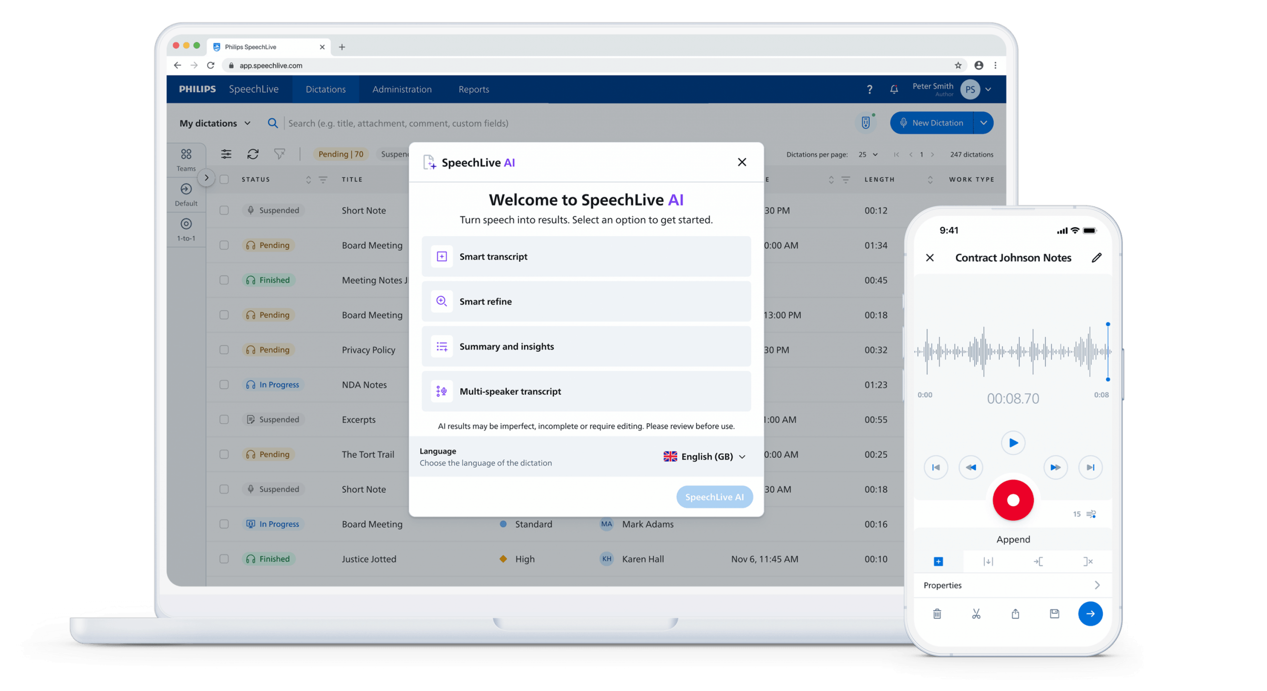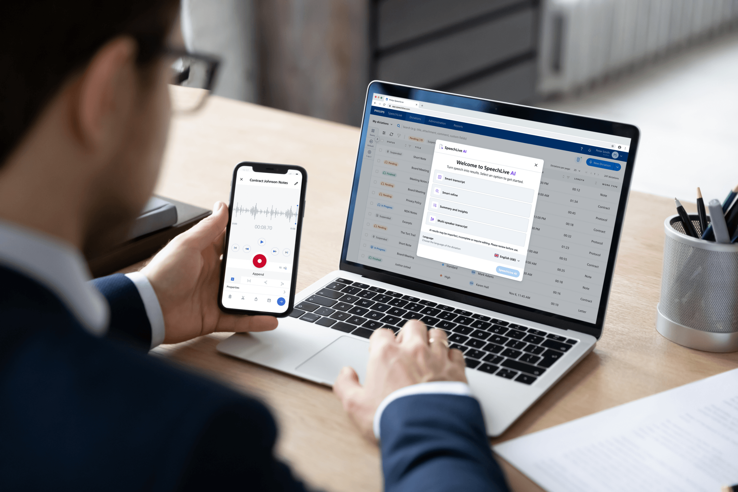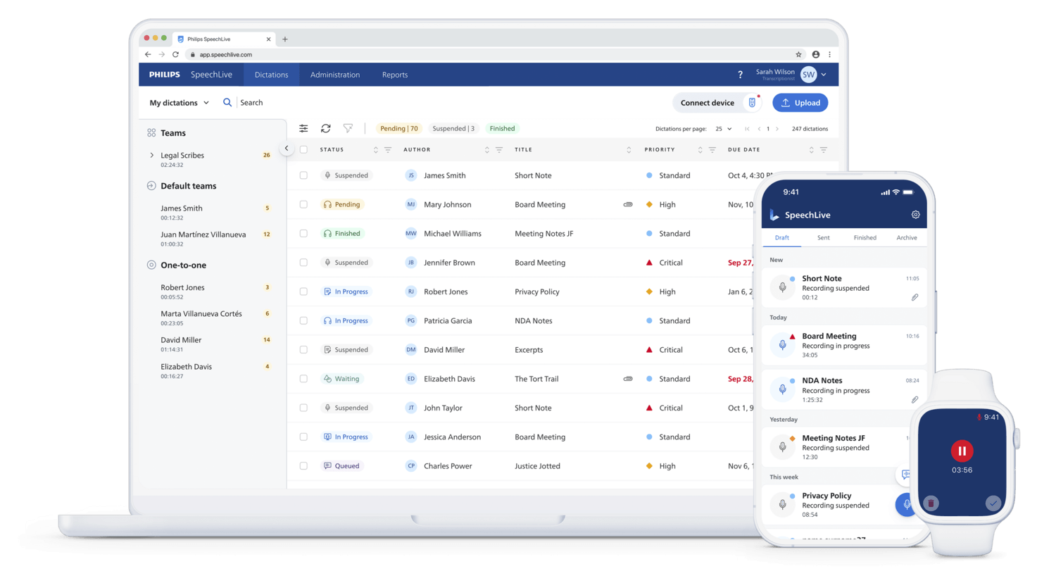 Dictate and manage files securely in the cloud, whether you're in the office, at court or working remotely. Stay flexible while keeping sensitive client information protected and maintaining full control over your documentation workflow. -
