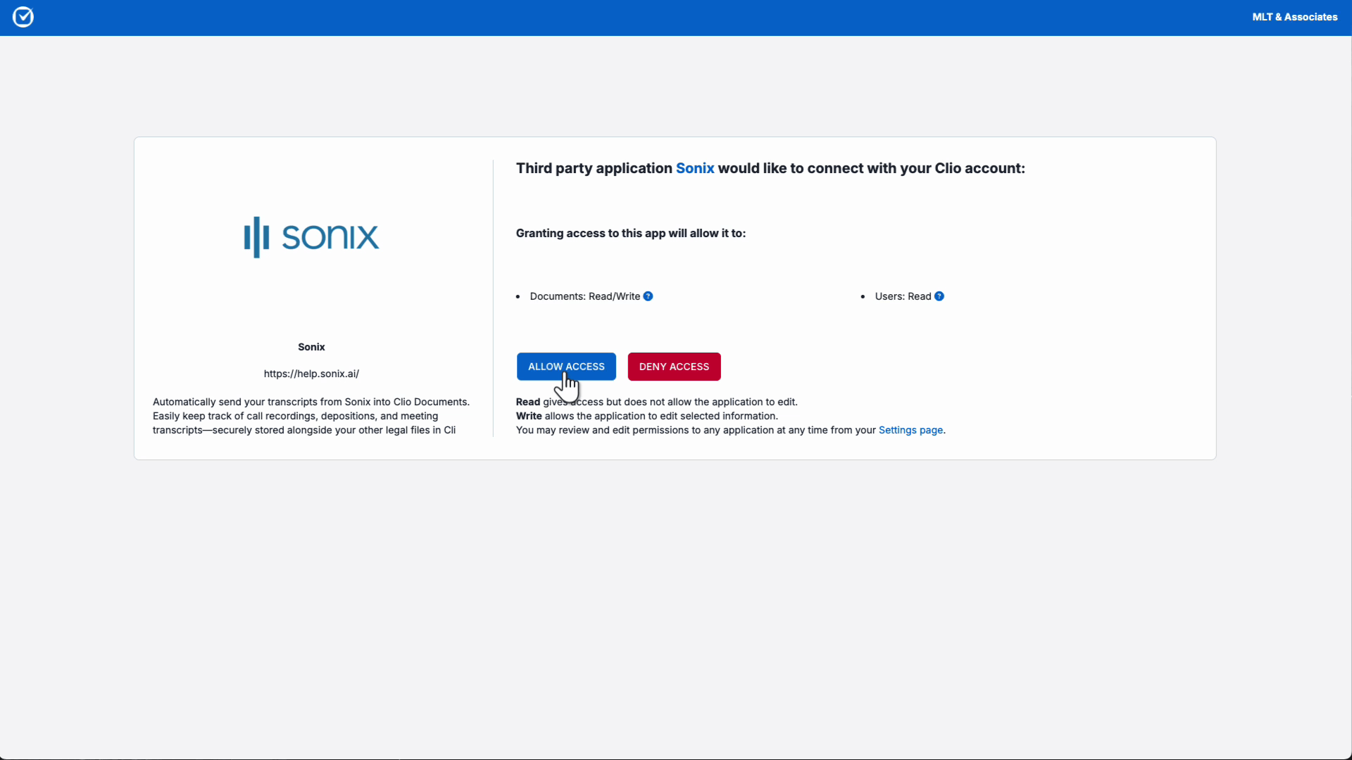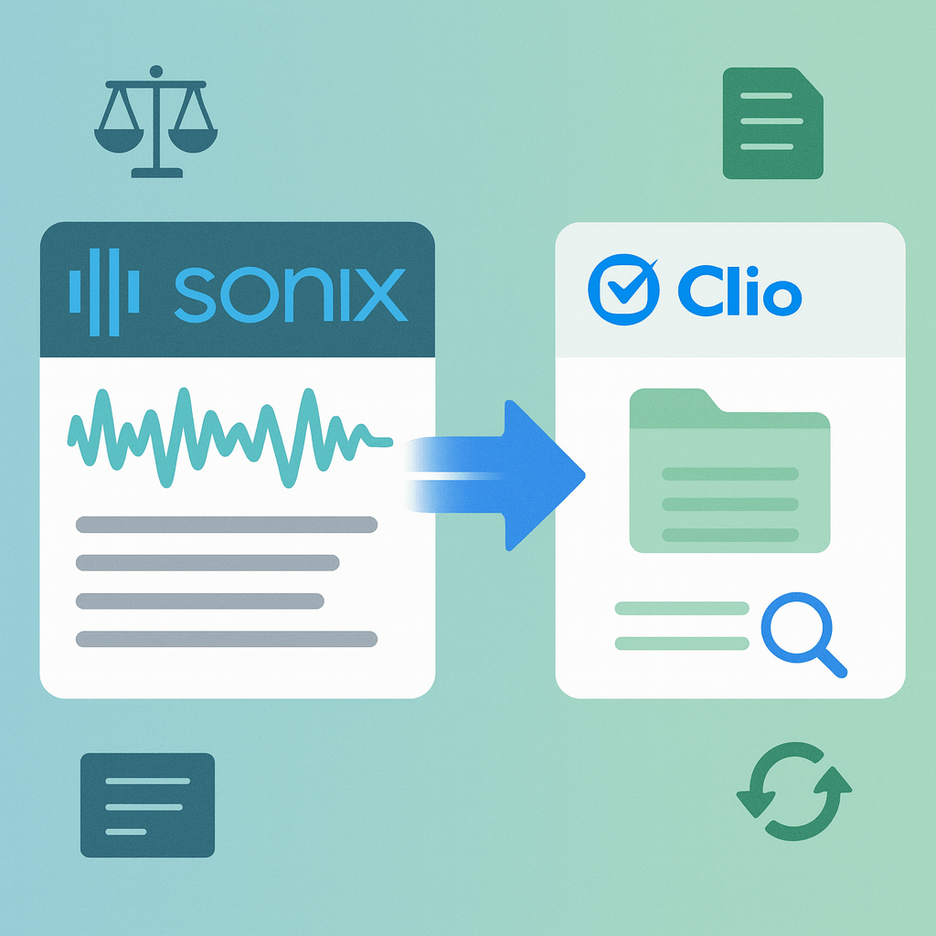 Sonix links directly with Clio Manage so your transcripts and audio files sync automatically into relevant matters. No manual upload, no exporting. Everything flows cleanly into your case records.