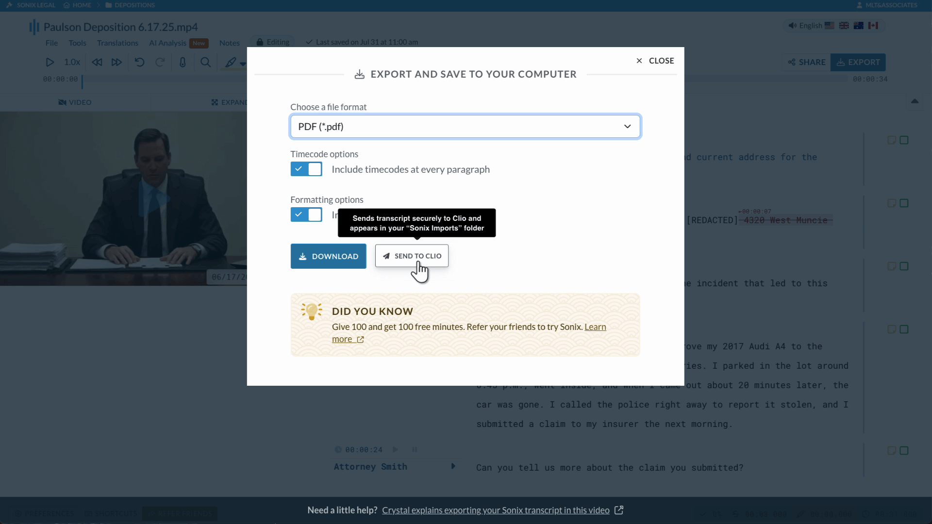 Ready to improve your workflow with Sonix and Clio? Get Started
