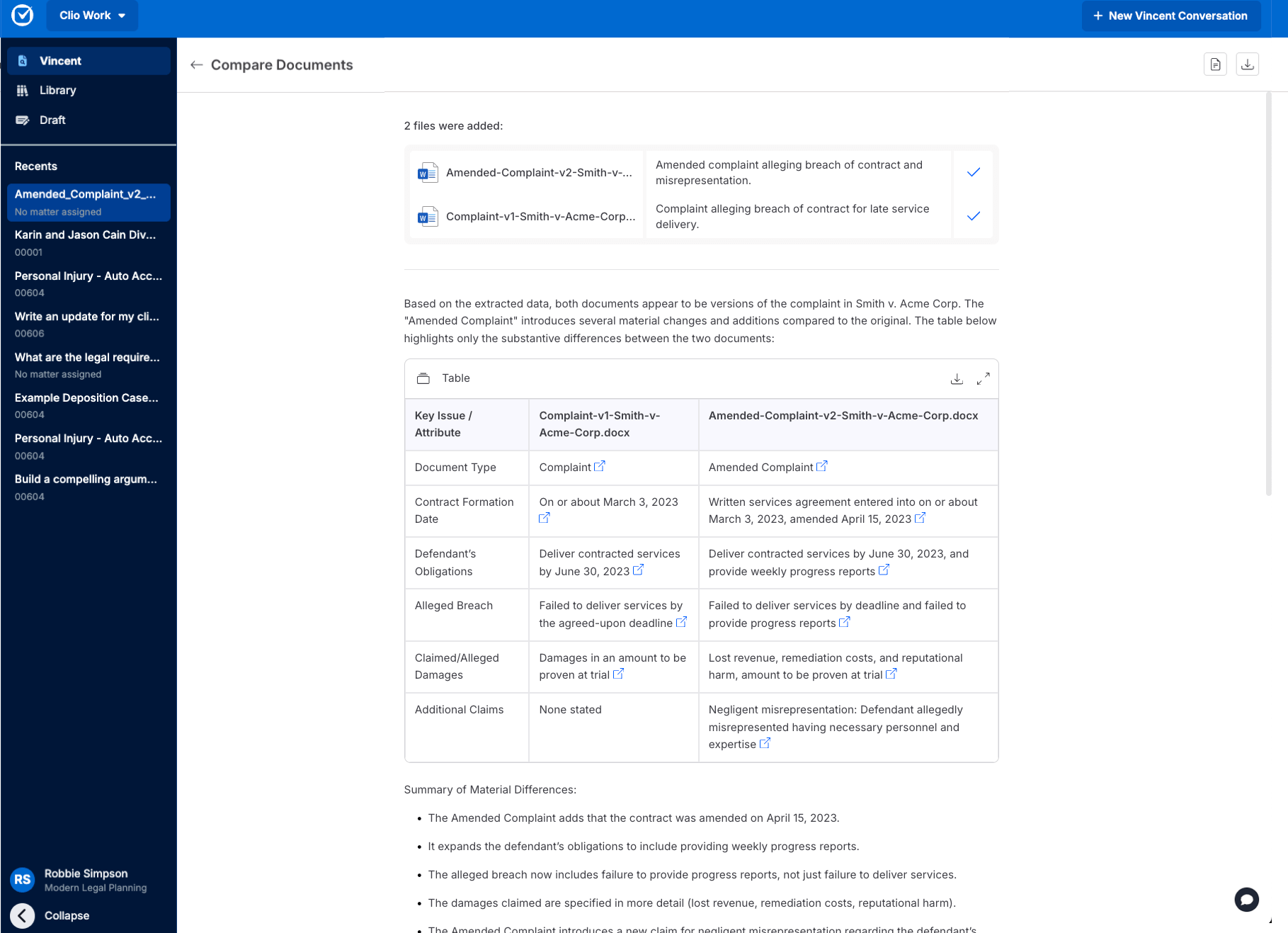 When legal documents get too complex for manual review, AI-assisted comparison tools like Clio Work provide lawyers with an easier way to compare changes across multiple document versions. Book your free demo today to see AI-assisted document comparison in action.