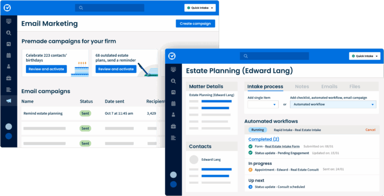 Appear at the top of Google search results, manage your pipeline of new clients, and make it easy to get in touch with your firm with online appointment booking and intake forms.