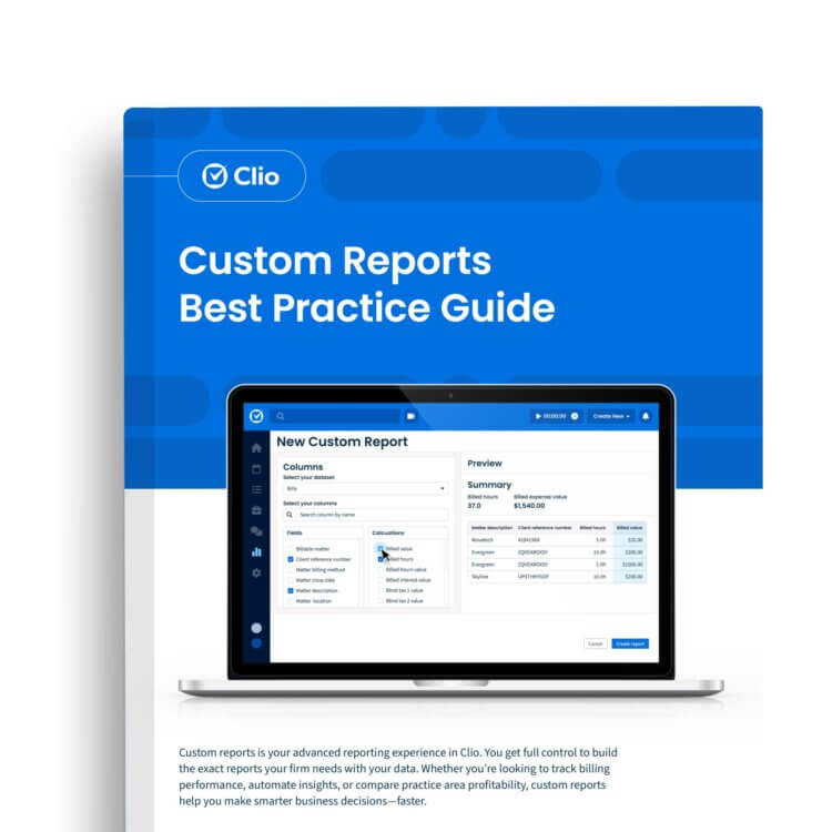 With Clio’s advanced reporting, you can build the exact reports your firm needs—whether it’s billing performance, team productivity, or profitability by practice area.