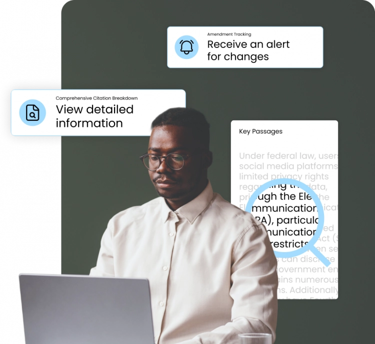 - Receive automatic alerts when statutes or regulations you rely on are amended.