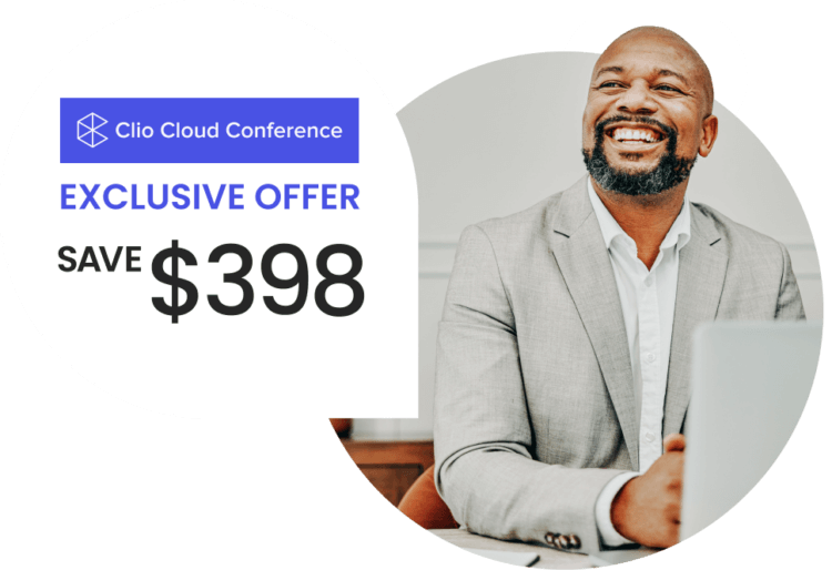 *To qualify for the Clio Grow account setup package for $1 USD (regular $399 USD) offer, you must be an existing Clio customer on a Boutique, Essentials, Elite or Advanced plan subscription that is using a US-based server and have purchased a ticket to the 2023 Clio Cloud Conference. The Clio Grow account setup package includes a 30 minute orientation and 1-hour coaching session with a Clio specialist, and the setup of two intake forms and three document templates. To take advantage of this offer, Clio Grow must be purchased by October 11, 2023. Only purchases made through a Clio sales representative will be eligible for the setup offer. This discount may not be combined with any other offer, except existing customer discounts. All of Clio Services will still be subject to the terms of service located at clio.com/ToS.